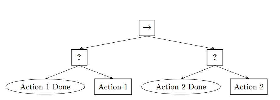 如果 Action 1 Done 返回Failure, 下一步将要执行的执行节点(叶子节点)就是 Action 1。
